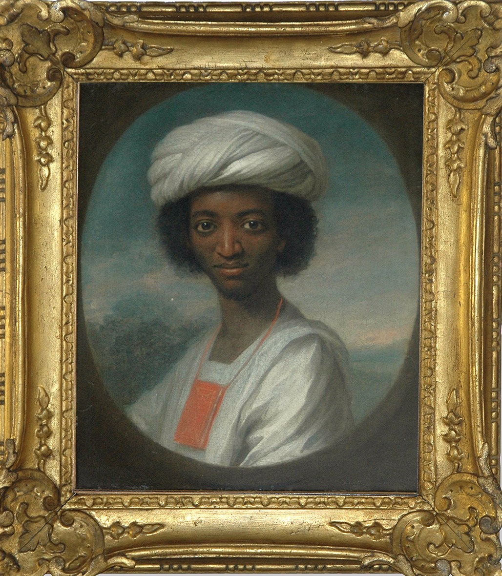 A coronation portrait of King George III from the studio of Allan Ramsay symbolizes British rule. The complexity and diversity of colonial American society are shown through a New York-made gorget with a silver bear symbol, probably used in diplomacy or trade with the Iroquois and a portrait of Ayuba Suleiman Diallo, one of the two earliest known portraits done from life of an African who had been enslaved in the British colonies that became the United States.